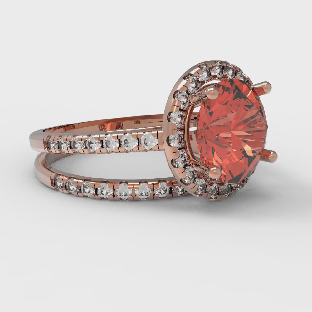 2.52 cttw Round Cut Simulated Red Diamond Bridal Set - Solid Rose Gold Engagement Ring & Wedding Band