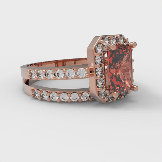 1.92 cttw Zirconia Simulated Red Diamond Solitaire with Zirconia Simulated Diamond Accents Engagement Ring - Solid Gold (VVS1, Emerald Cut,7.5X5.5mm)