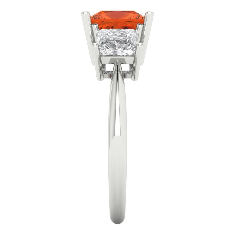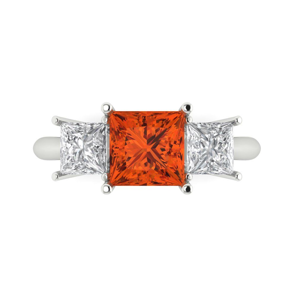 2.5 cttw Zirconia Simulated Red Diamond Three-Stone Engagement Ring - Solid Gold (VVS1, Princess Cut,6.5 mm)
