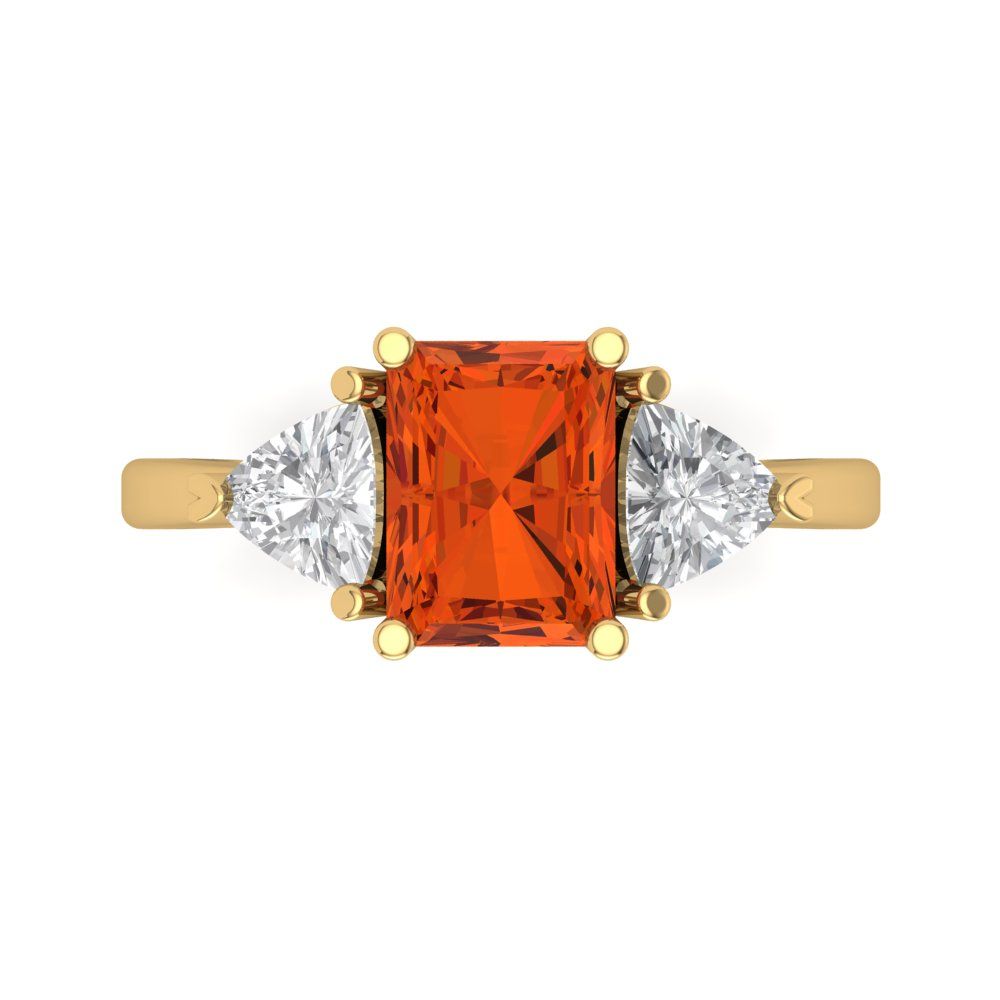 2.82 cttw Zirconia Simulated Red Diamond Three-Stone Engagement Ring - Solid Gold (VVS1, Emerald Cut,8x6mm)