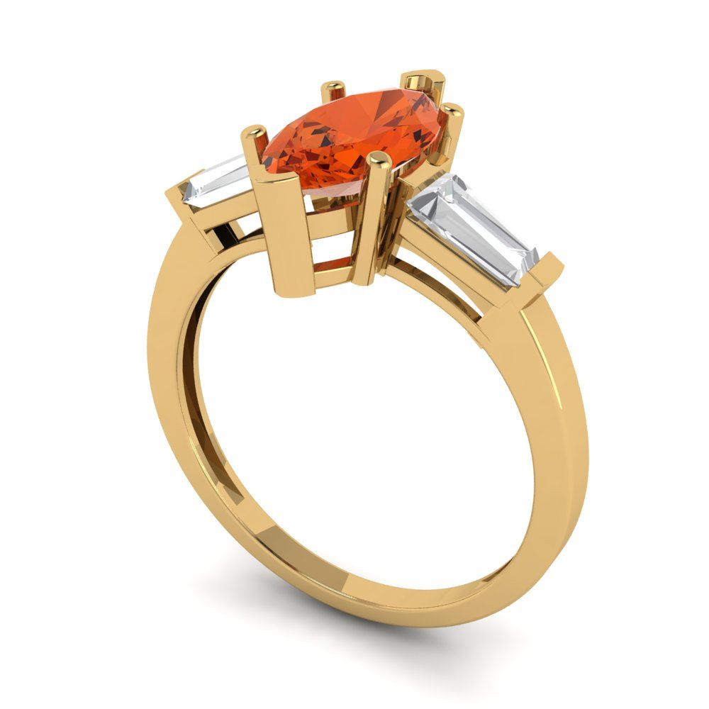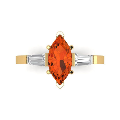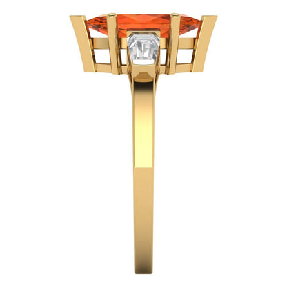 2 cttw Zirconia Simulated Red Diamond Three-Stone Engagement Ring - Solid Gold (VVS1, Marquise Cut,11x5.5mm)