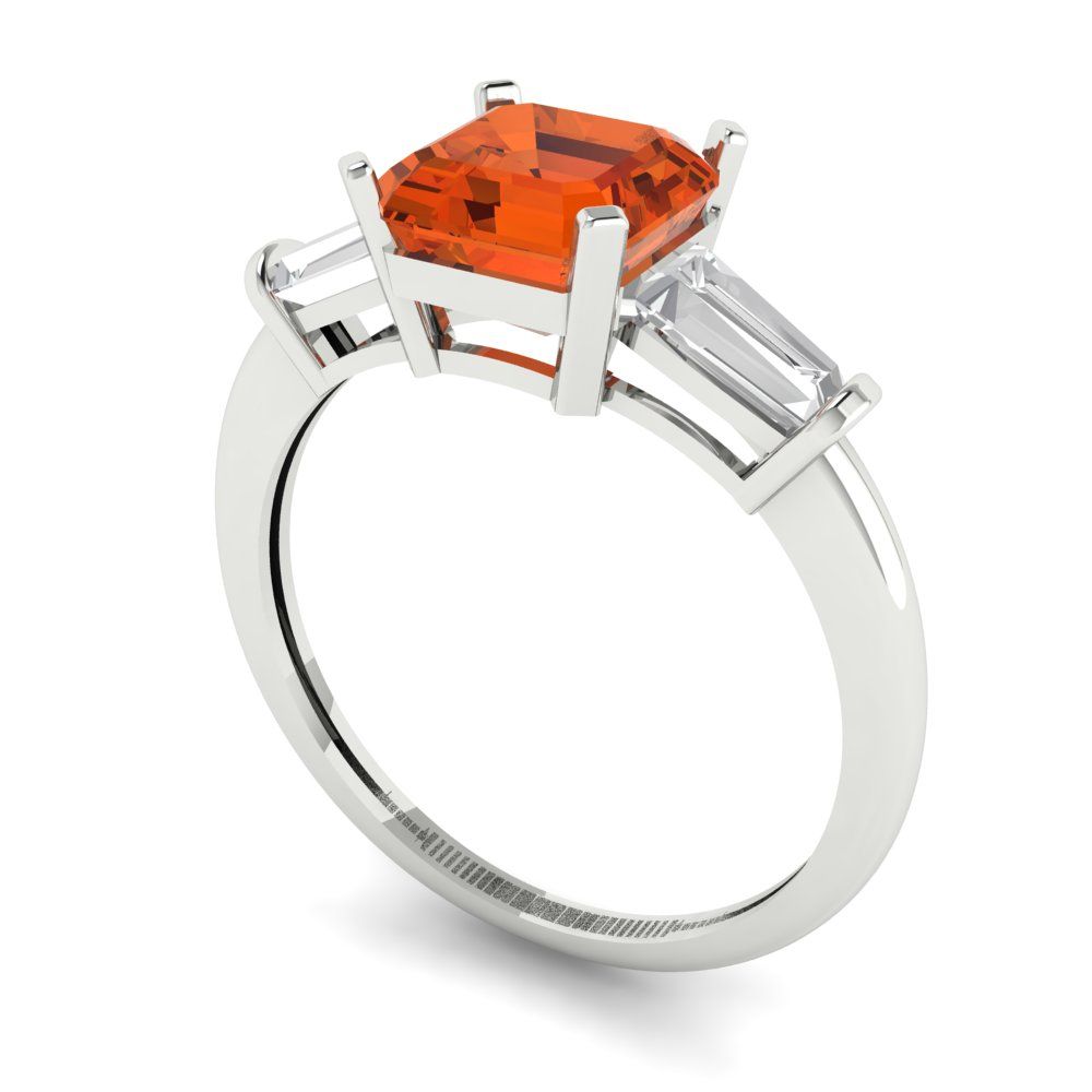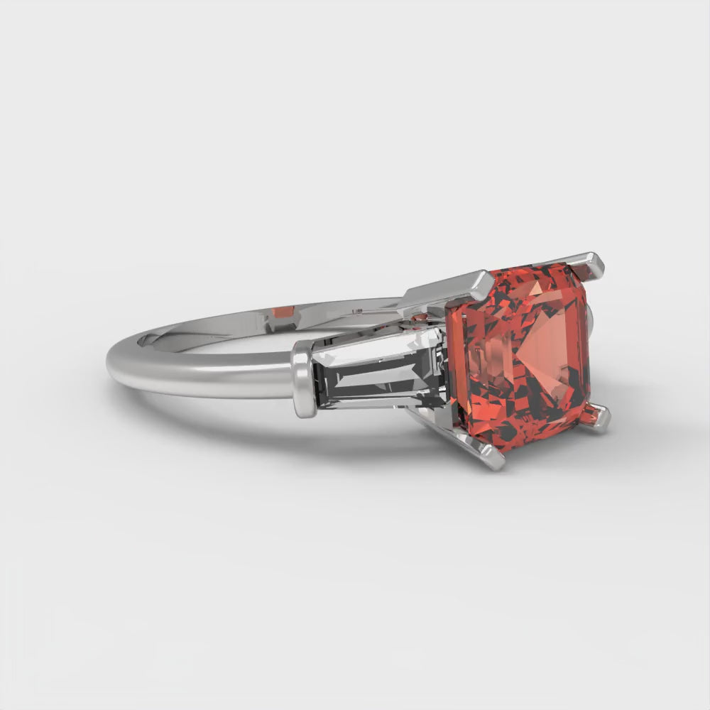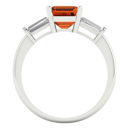 1.62 cttw Zirconia Simulated Red Diamond Three-Stone Engagement Ring - Solid Gold (VVS1, Square Emerald Cut,6.5X6.5mm)