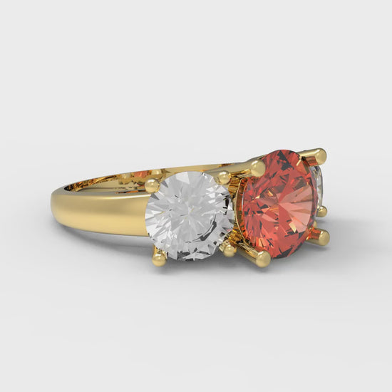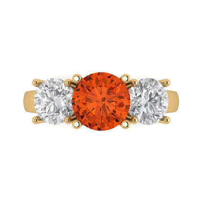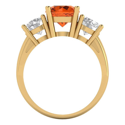 3 cttw Zirconia Simulated Red Diamond Three-Stone Engagement Ring - Solid Gold (VVS1, Round Cut,7.5mm)