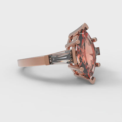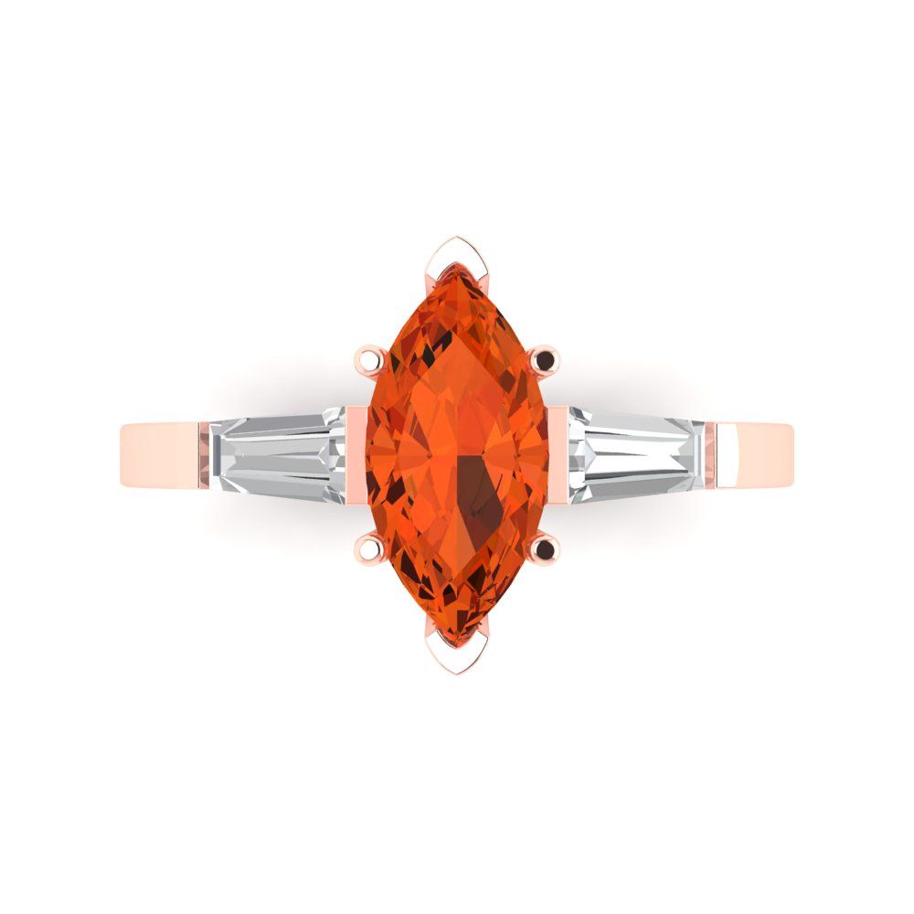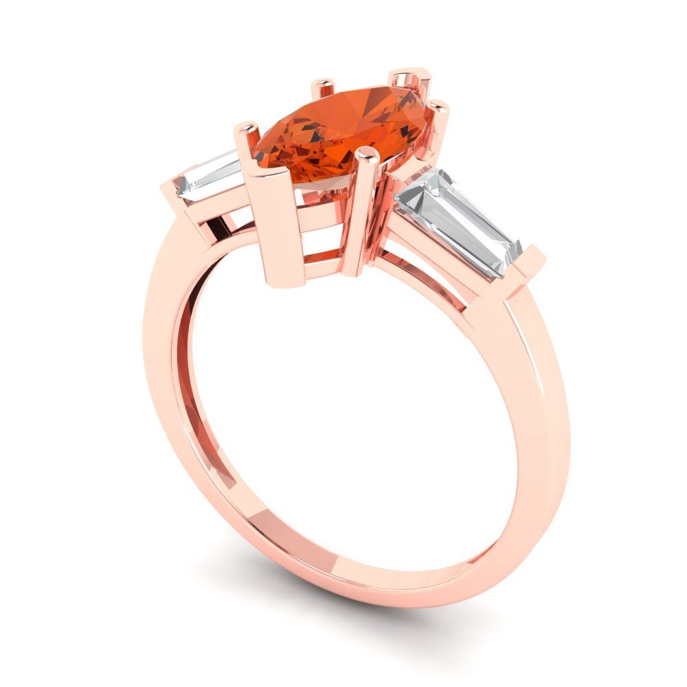 2 cttw Zirconia Simulated Red Diamond Three-Stone Engagement Ring - Solid Gold (VVS1, Marquise Cut,11x5.5mm)