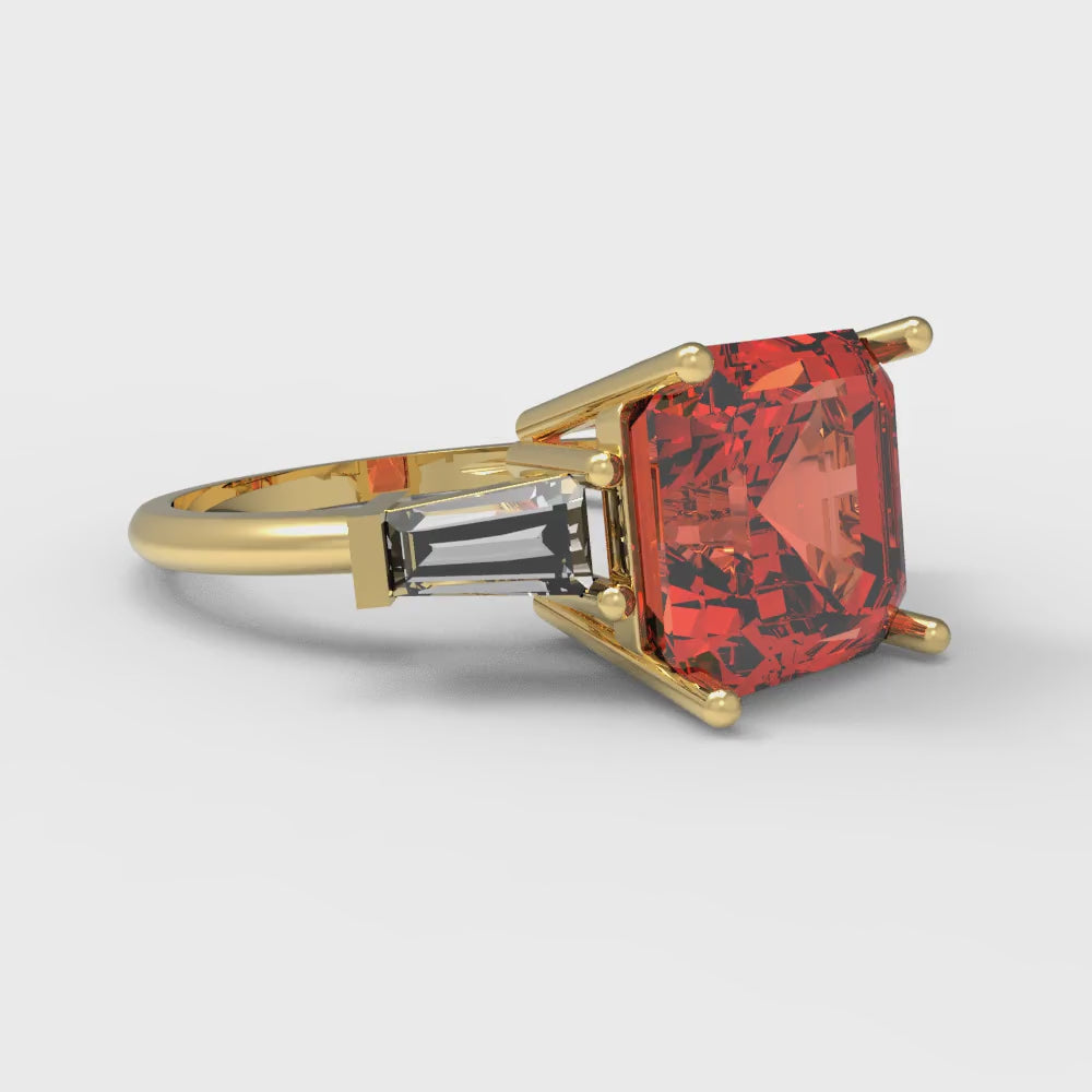 3 cttw Zirconia Simulated Red Diamond Three-Stone Engagement Ring - Solid Gold (VVS1, Asscher Cut,8.0mm)