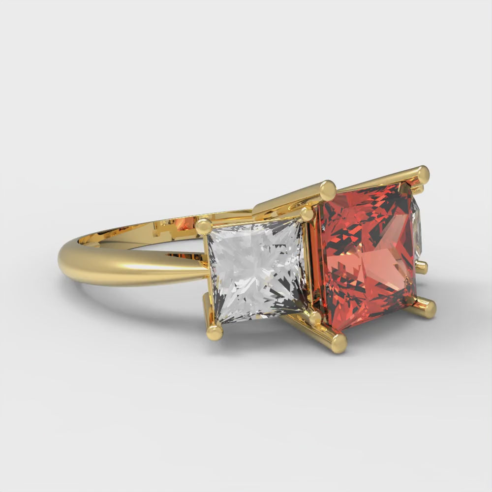 2.5 cttw Zirconia Simulated Red Diamond Three-Stone Engagement Ring - Solid Gold (VVS1, Princess Cut,6.5 mm)
