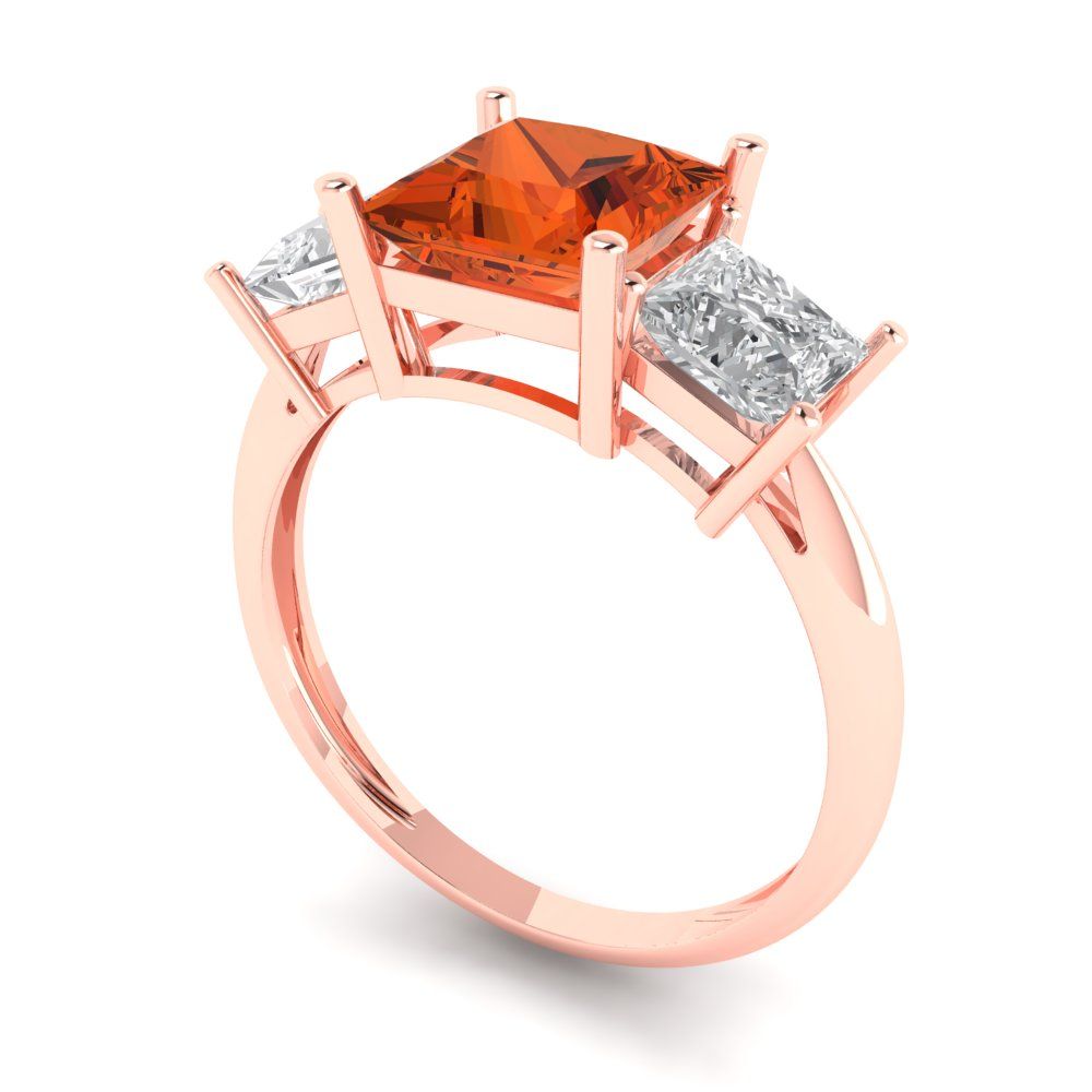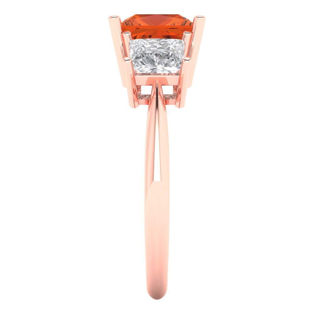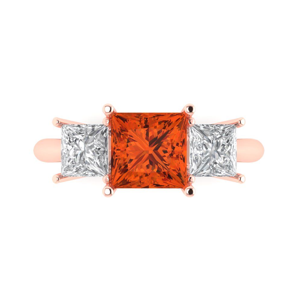 2.5 cttw Zirconia Simulated Red Diamond Three-Stone Engagement Ring - Solid Gold (VVS1, Princess Cut,6.5 mm)