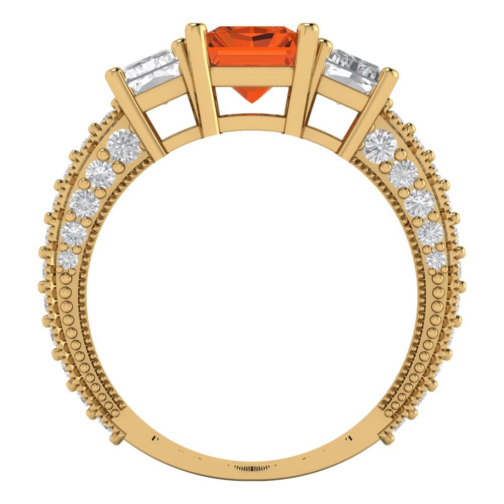 3.61 cttw Zirconia Simulated Red Diamond Three-Stone Engagement Ring - Solid Gold (VVS1, Emerald Cut,8x6mm)