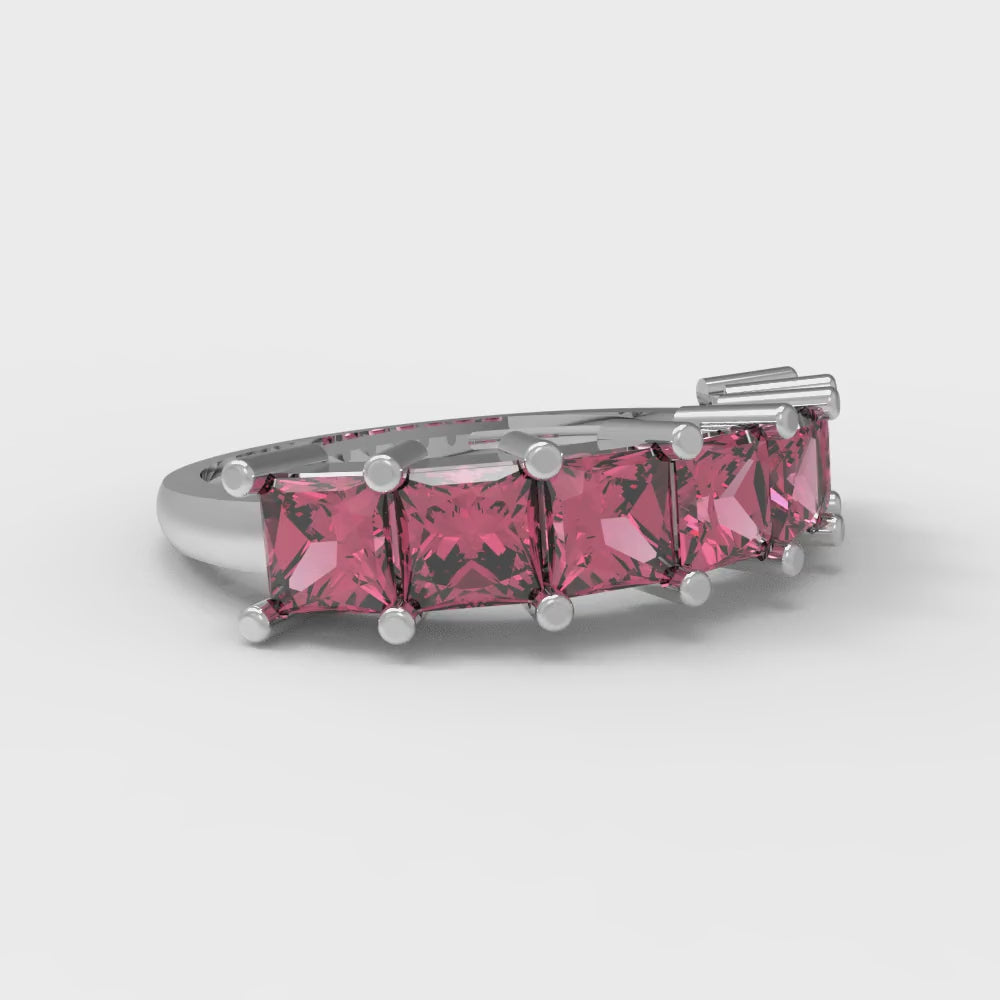 1.75 cttw Simulated Ruby Princess Cut White Gold Eternity Wedding Band