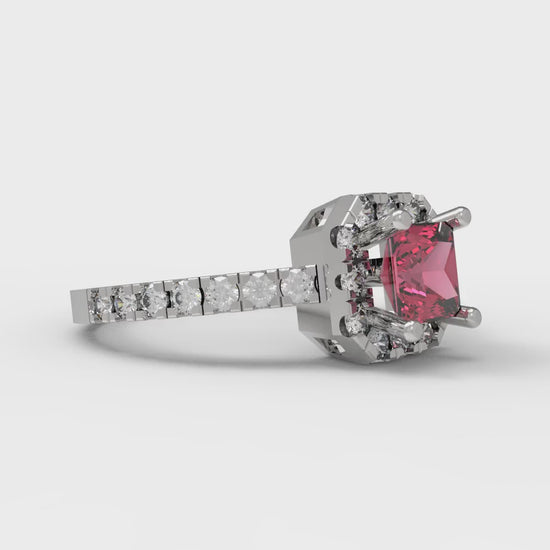 0.89 cttw Simulated Ruby Hidden Halo Engagement Ring - Solid Gold (Princess Cut,4.5mm)