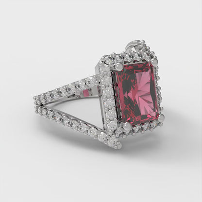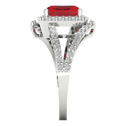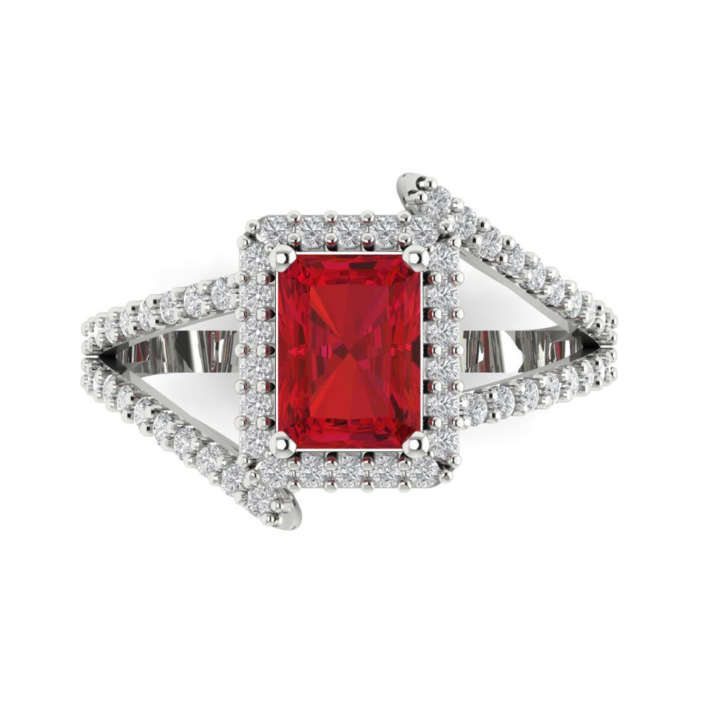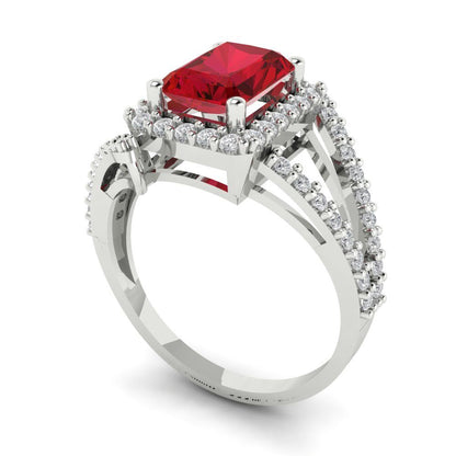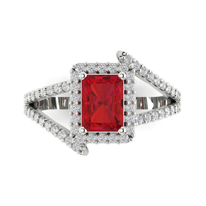 1.935 cttw Simulated Ruby Hidden Halo Engagement Ring - Solid Gold (Emerald Cut,7.5x5.5mm)
