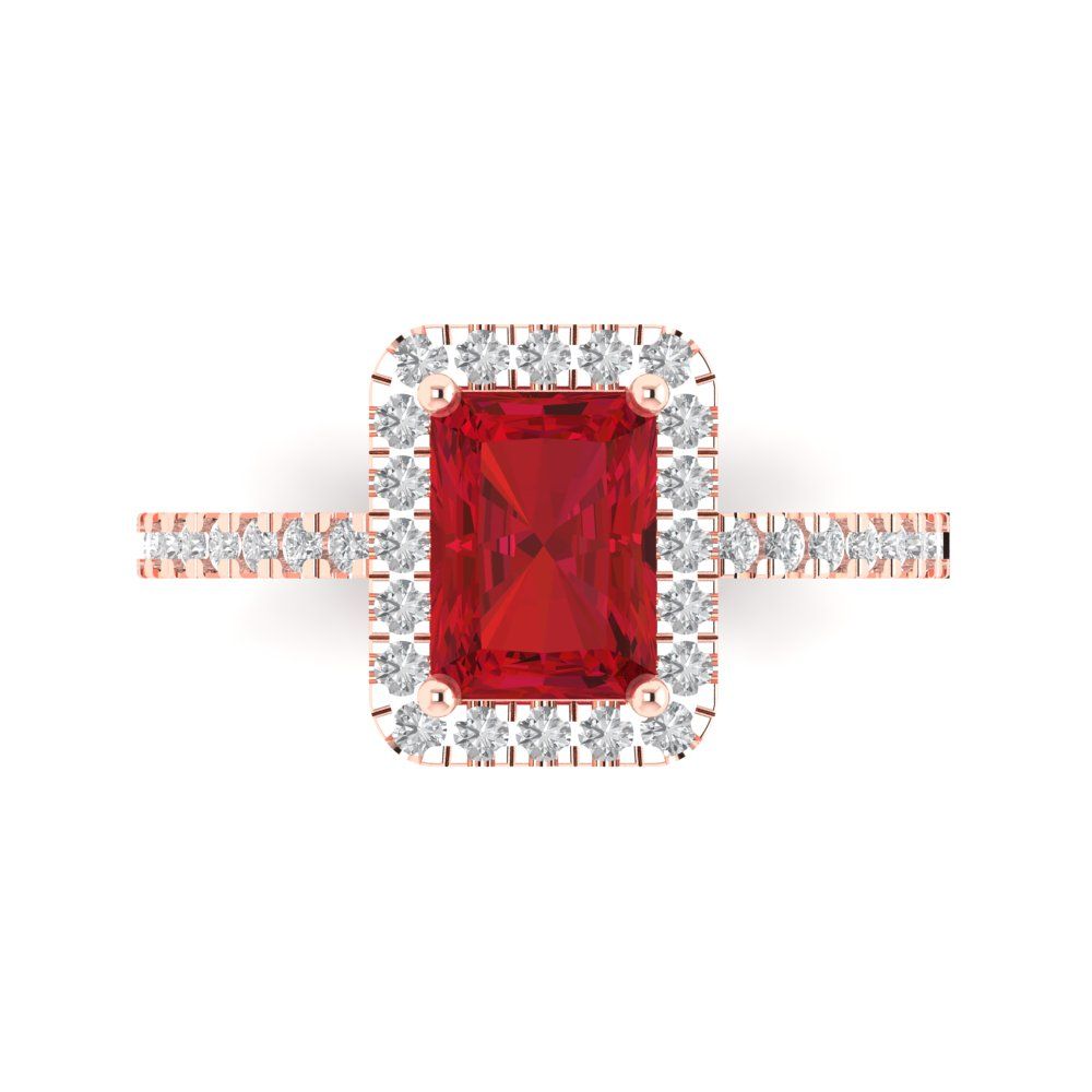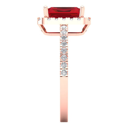 1.86 cttw Simulated Ruby Hidden Halo Engagement Ring - Solid Gold (Emerald Cut,7.5x5.5mm)