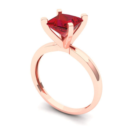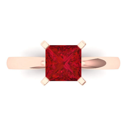 1.5 cttw Simulated Ruby Solitaire Engagement Ring - Solid Gold (Princess Cut,6.5mm)