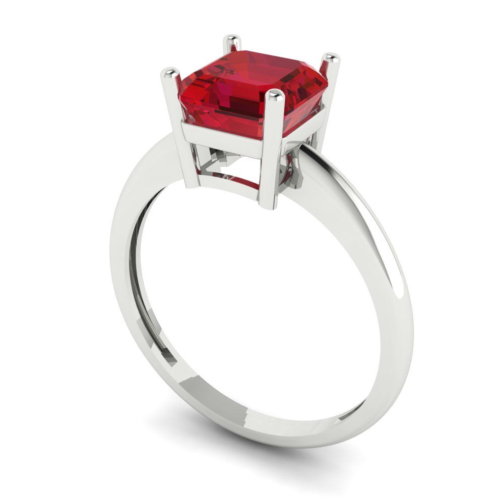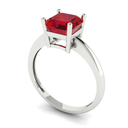 1.5 cttw Simulated Ruby Solitaire Engagement Ring - Solid Gold (Asscher Cut,6.5mm)