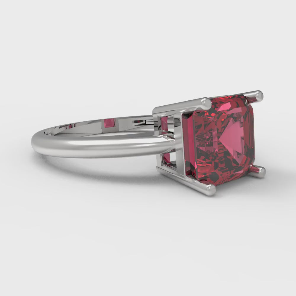 2 cttw Simulated Ruby Solitaire Engagement Ring - Solid White Gold (VVS1, Asscher Cut,7.0mm)