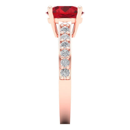 2.3 cttw Simulated Ruby Solitaire with Zirconia Simulated Diamond Accents Engagement Ring - Solid Gold (Round Cut,8.0mm)