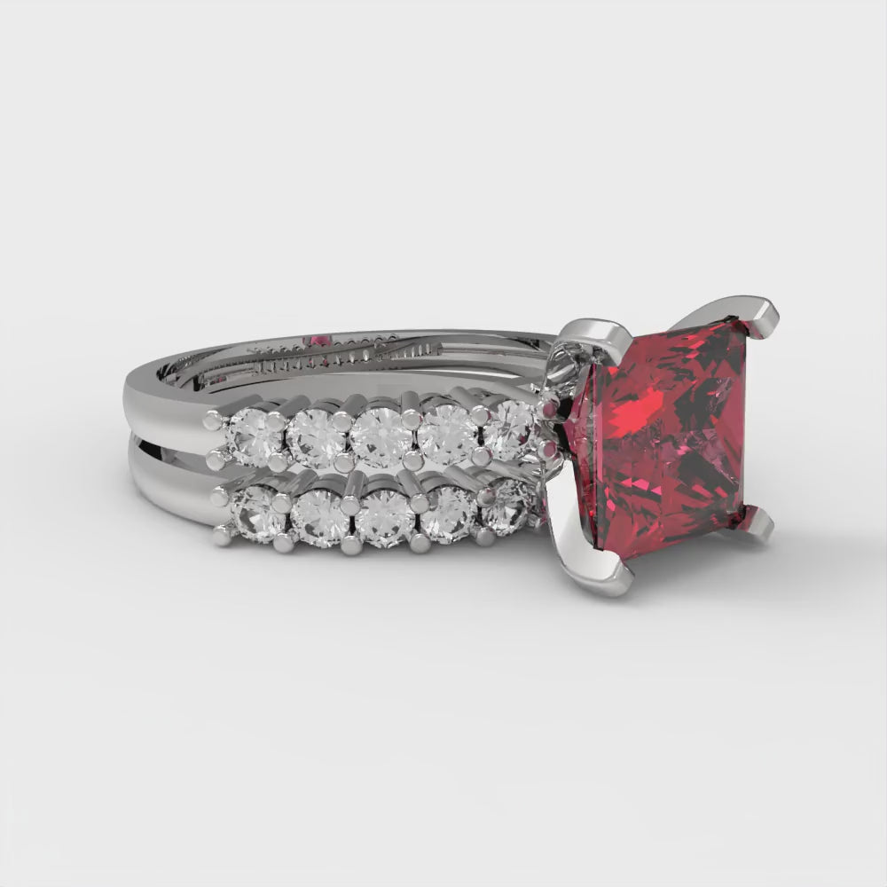 2.63 cttw Princess Cut Simulated Ruby Bridal Set - Solid White Gold Engagement Ring & Wedding Band
