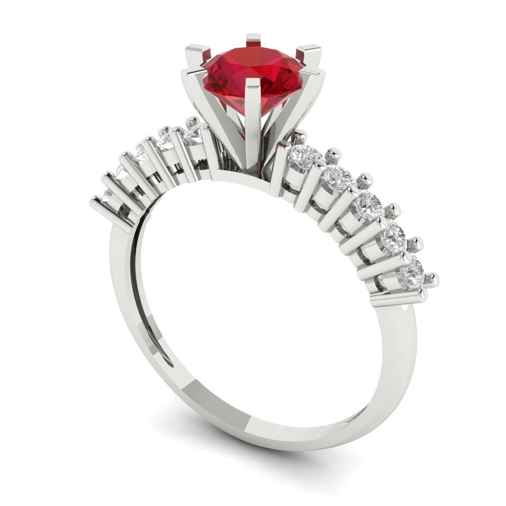 1.05 cttw Simulated Ruby Solitaire with Zirconia Simulated Diamond Accents Engagement Ring - Solid Gold (Round Cut,6.0mm)