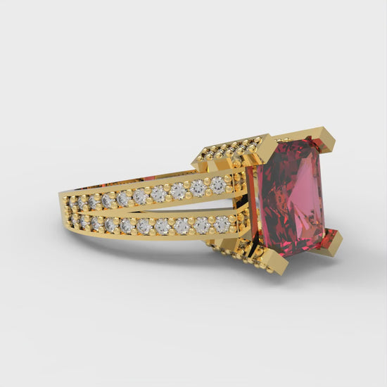 2.45 cttw Simulated Ruby Solitaire with Zirconia Simulated Diamond Accents Engagement Ring - Solid Gold (Emerald Cut,8x6mm)