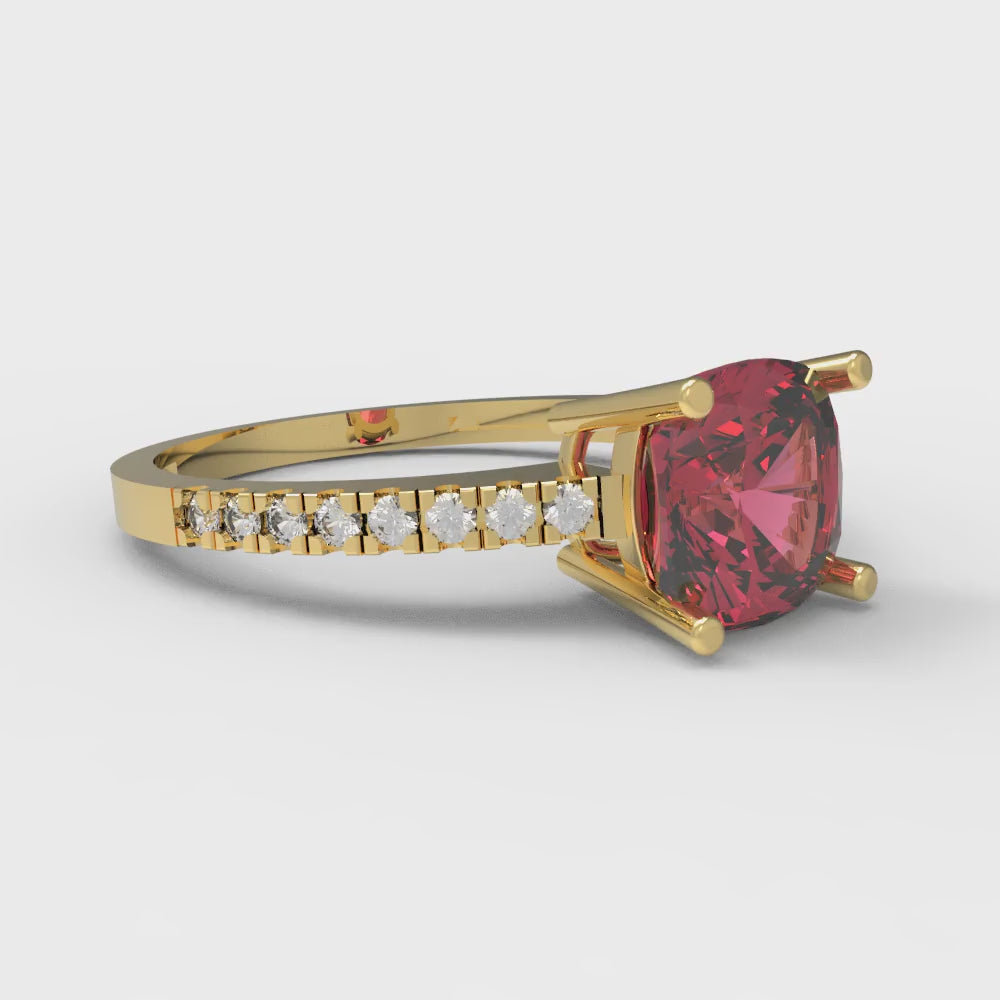 2.7 cttw Simulated Ruby Solitaire with Zirconia Simulated Diamond Accents Engagement Ring - Solid Gold (Cushion Cut,6.5mm)