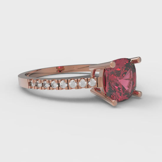 2.7 cttw Simulated Ruby Solitaire with Zirconia Simulated Diamond Accents Engagement Ring - Solid Gold (Cushion Cut,6.5mm)