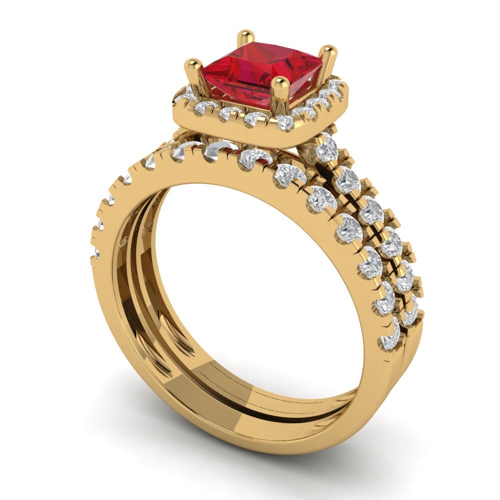 1.56 cttw Princess Cut Simulated Ruby Bridal Set - Solid Yellow Gold Engagement Ring & Wedding Band