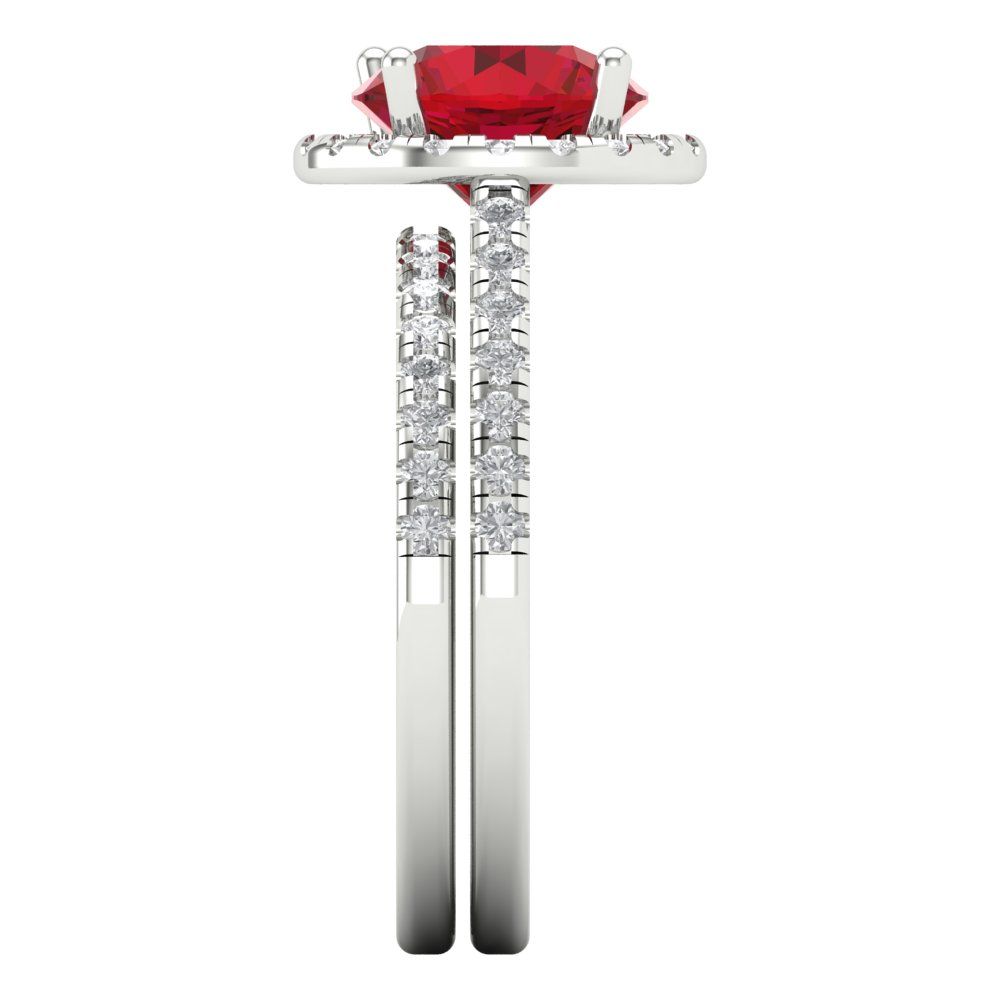 2.52 cttw Round Cut Simulated Ruby Bridal Set - Solid White Gold Engagement Ring & Wedding Band