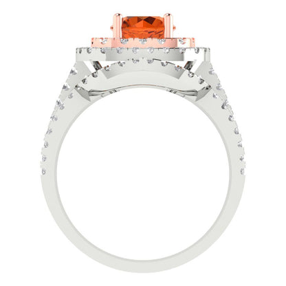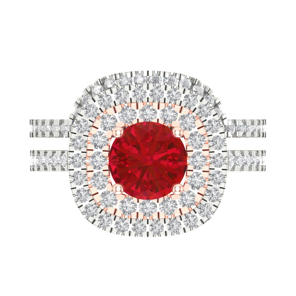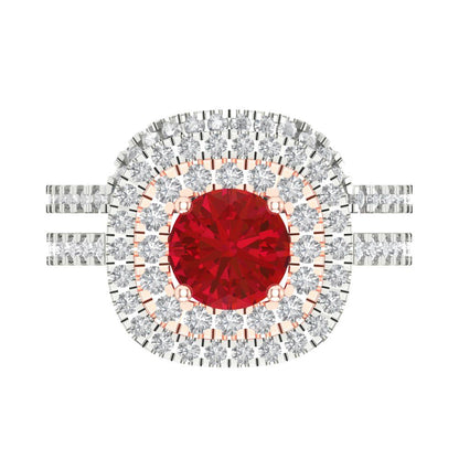 1.7825 cttw Round Cut Simulated Ruby Bridal Set - Solid White/Rose Gold Engagement Ring & Wedding Band