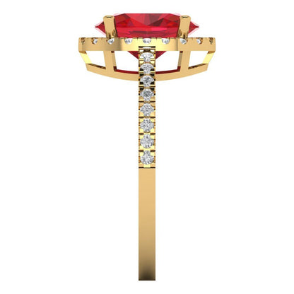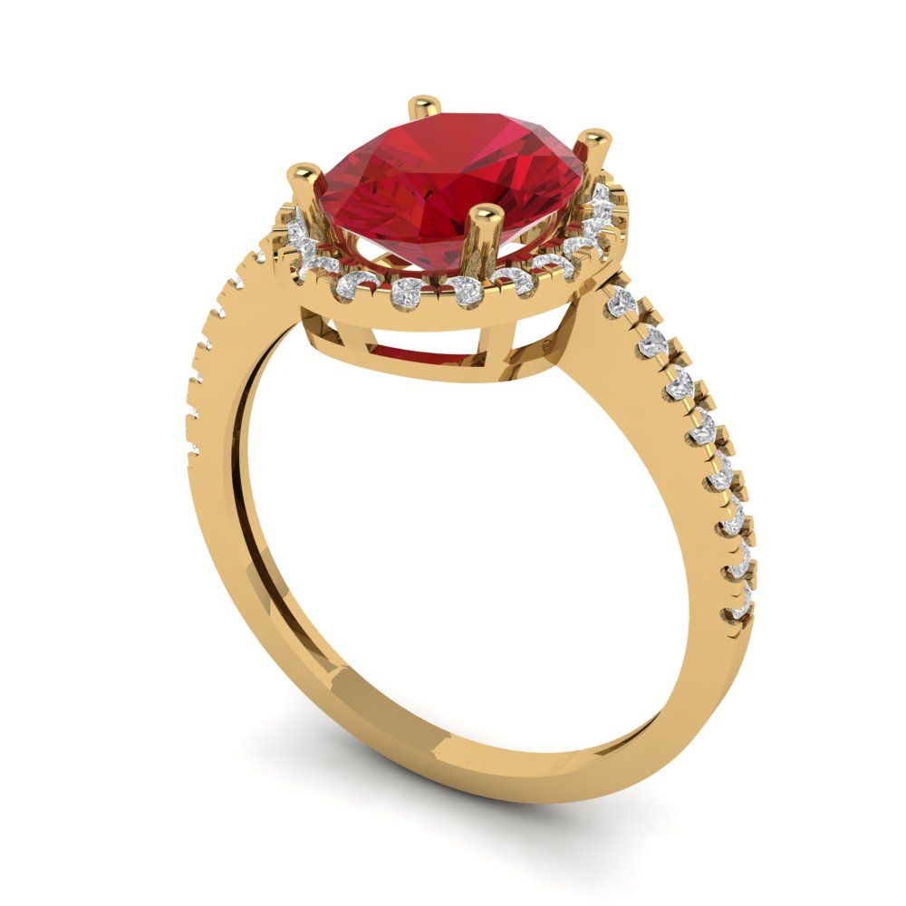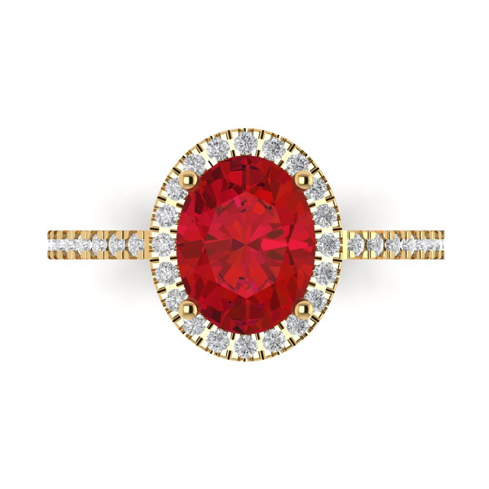 2.27 cttw Simulated Ruby Solitaire with Zirconia Simulated Diamond Accents Engagement Ring - Solid Gold (Oval Cut,9X7mm)