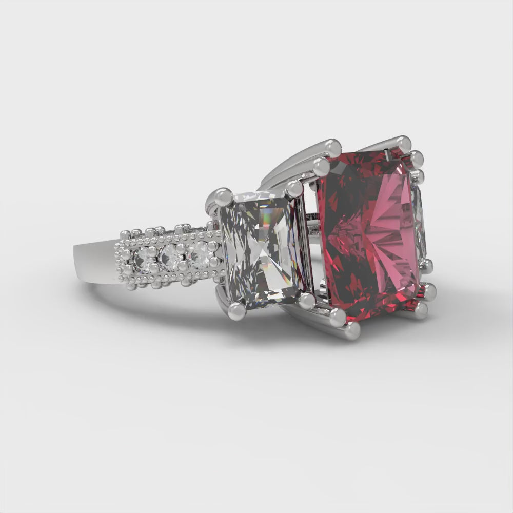 4.27 cttw Simulated Ruby Three-Stone Engagement Ring - Solid Gold (Emerald Cut,9x7mm)