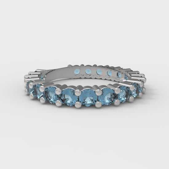 1.26 cttw Natural Sky Blue Topaz Round Cut White Gold Eternity Wedding Band
