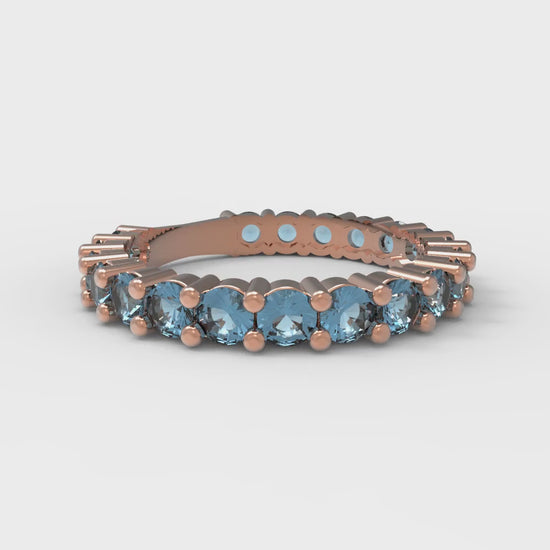 1.44 cttw Natural Sky Blue Topaz Round Cut Rose Gold Eternity Wedding Band