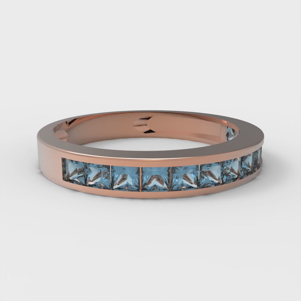 0.78 cttw Natural Sky Blue Topaz Princess Cut Rose Gold Eternity Wedding Band