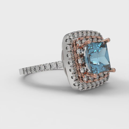 2.07 cttw Natural Sky Blue Topaz Hidden Halo Engagement Ring - Solid Gold (Princess Cut,6.5mm)