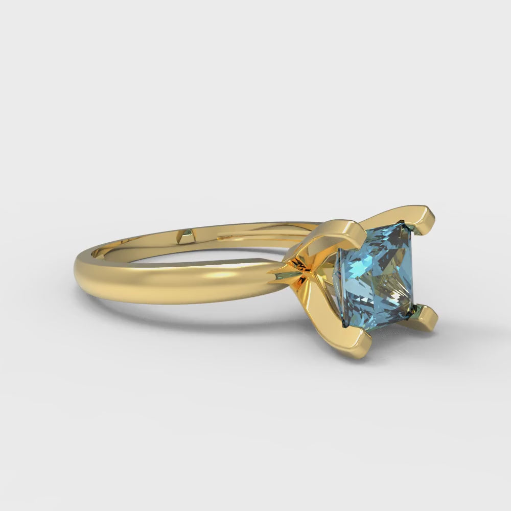1 cttw Natural Sky Blue Topaz Solitaire Engagement Ring - Solid Gold (Princess Cut,5.5mm)