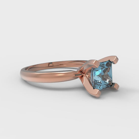 1 cttw Natural Sky Blue Topaz Solitaire Engagement Ring - Solid Gold (Princess Cut,5.5mm)
