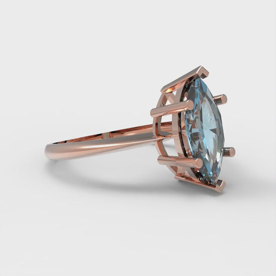 1.5 cttw Natural Sky Blue Topaz Solitaire Engagement Ring - Solid Rose Gold (VVS1, Marquise Cut ,11x5.5mm)