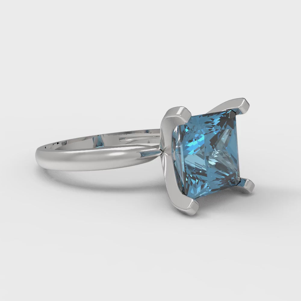 3 cttw Natural Sky Blue Topaz Solitaire Engagement Ring - Solid Gold (Princess Cut,8.0mm)