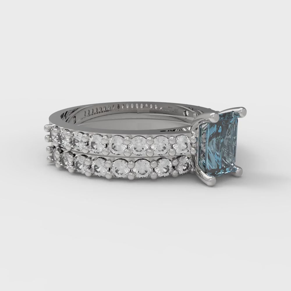 1.325 cttw Emerald Cut Natural Sky Blue Topaz Bridal Set - Solid White Gold Engagement Ring & Wedding Band