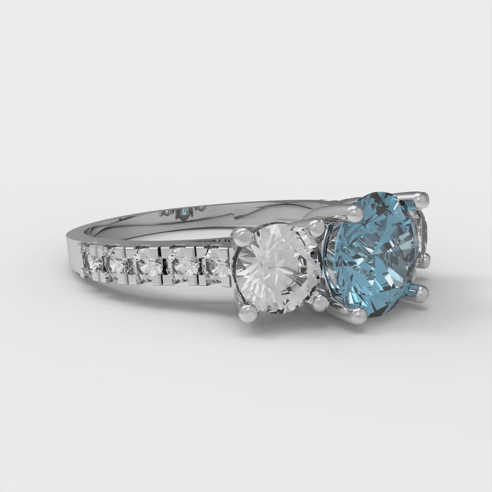 1.97 cttw Natural Sky Blue Topaz Three-Stone Engagement Ring - Solid Gold (Round Cut,6.5mm)