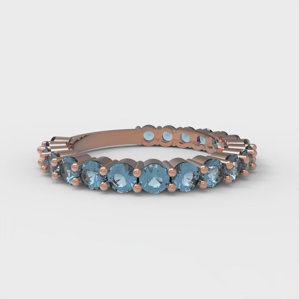 1.2 cttw Natural Swiss Blue Topaz Round Cut Rose Gold Eternity Wedding Band