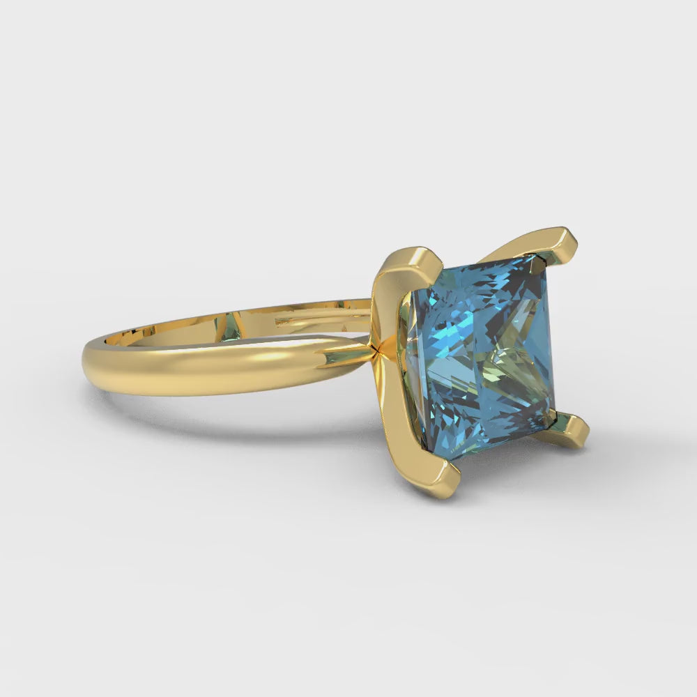 3 cttw Natural Swiss Blue Topaz Solitaire Engagement Ring - Solid Gold (Princess Cut,8.0mm)