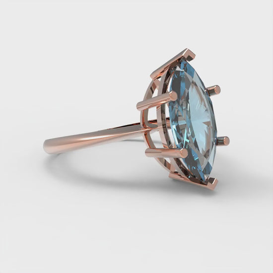 2.5 cttw Natural Swiss Blue Topaz Solitaire Engagement Ring - Solid Gold (Marquise Cut ,13x6.5mm)