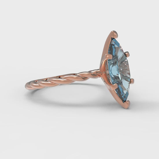 2 cttw Natural Swiss Blue Topaz Solitaire Engagement Ring - Solid Gold (Marquise Cut,12x6mm )