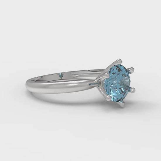 1 cttw Natural Swiss Blue Topaz Solitaire Engagement Ring - Solid Gold (Round Cut,6.5mm)