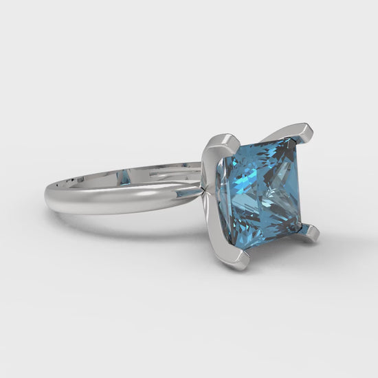 3 cttw Natural Swiss Blue Topaz Solitaire Engagement Ring - Solid Gold (Princess Cut,8.0mm)