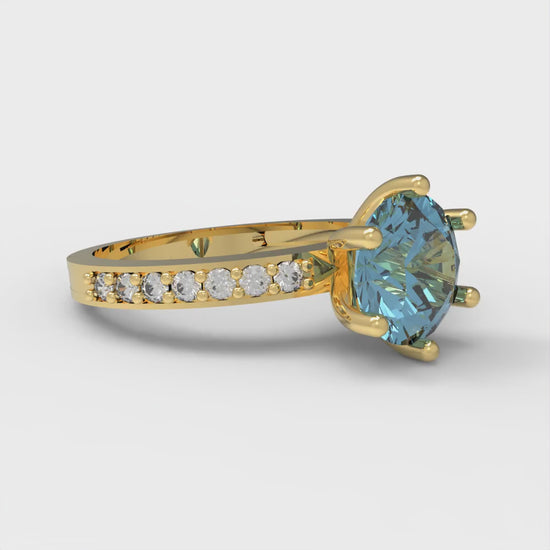 1.71 cttw Natural Swiss Blue Topaz Solitaire with Zirconia Simulated Diamond Accents Engagement Ring - Solid Gold (Round Cut,7.5mm)
