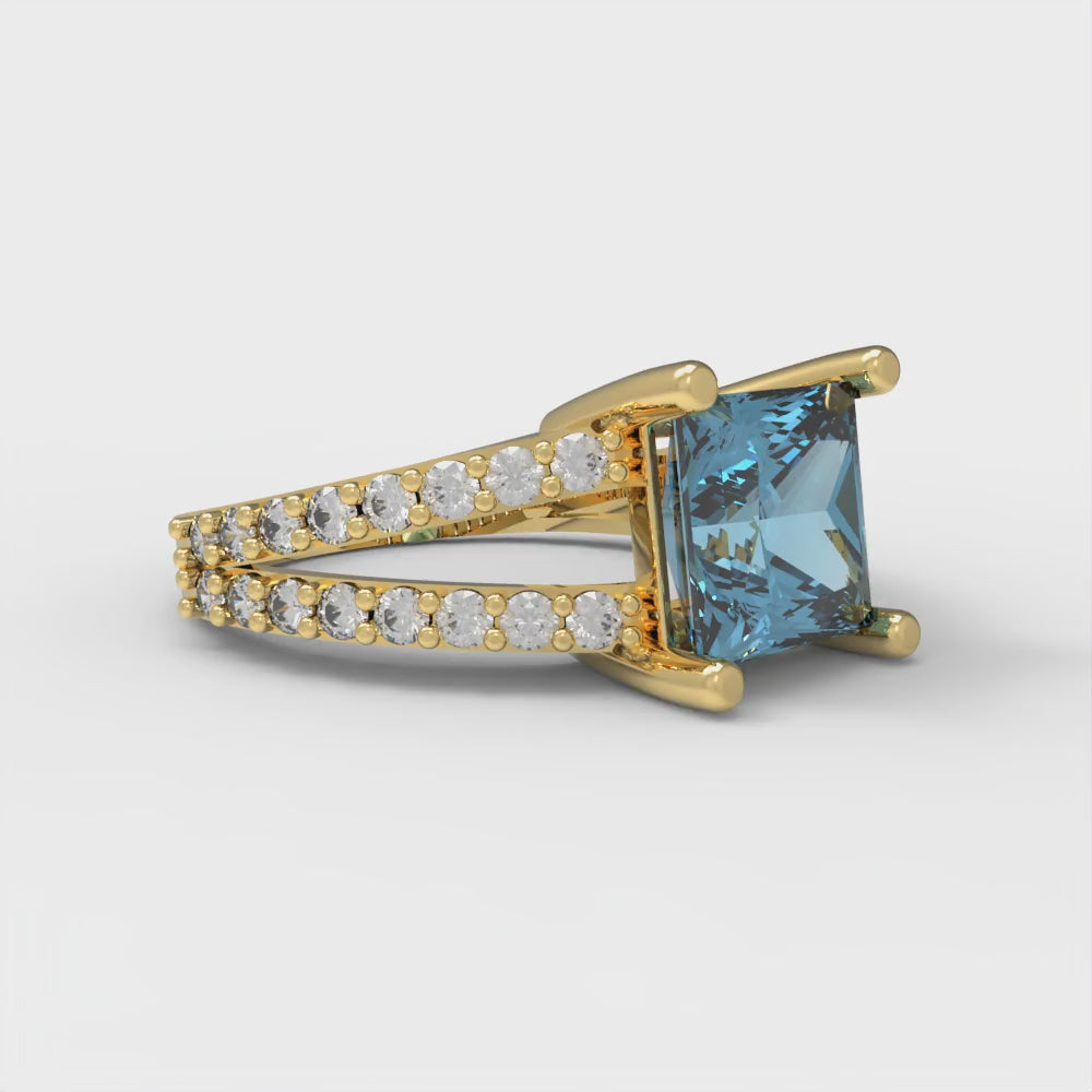 2.48 cttw Natural Swiss Blue Topaz Solitaire with Zirconia Simulated Diamond Accents Engagement Ring - Solid Gold (Princess Cut,7.0mm)