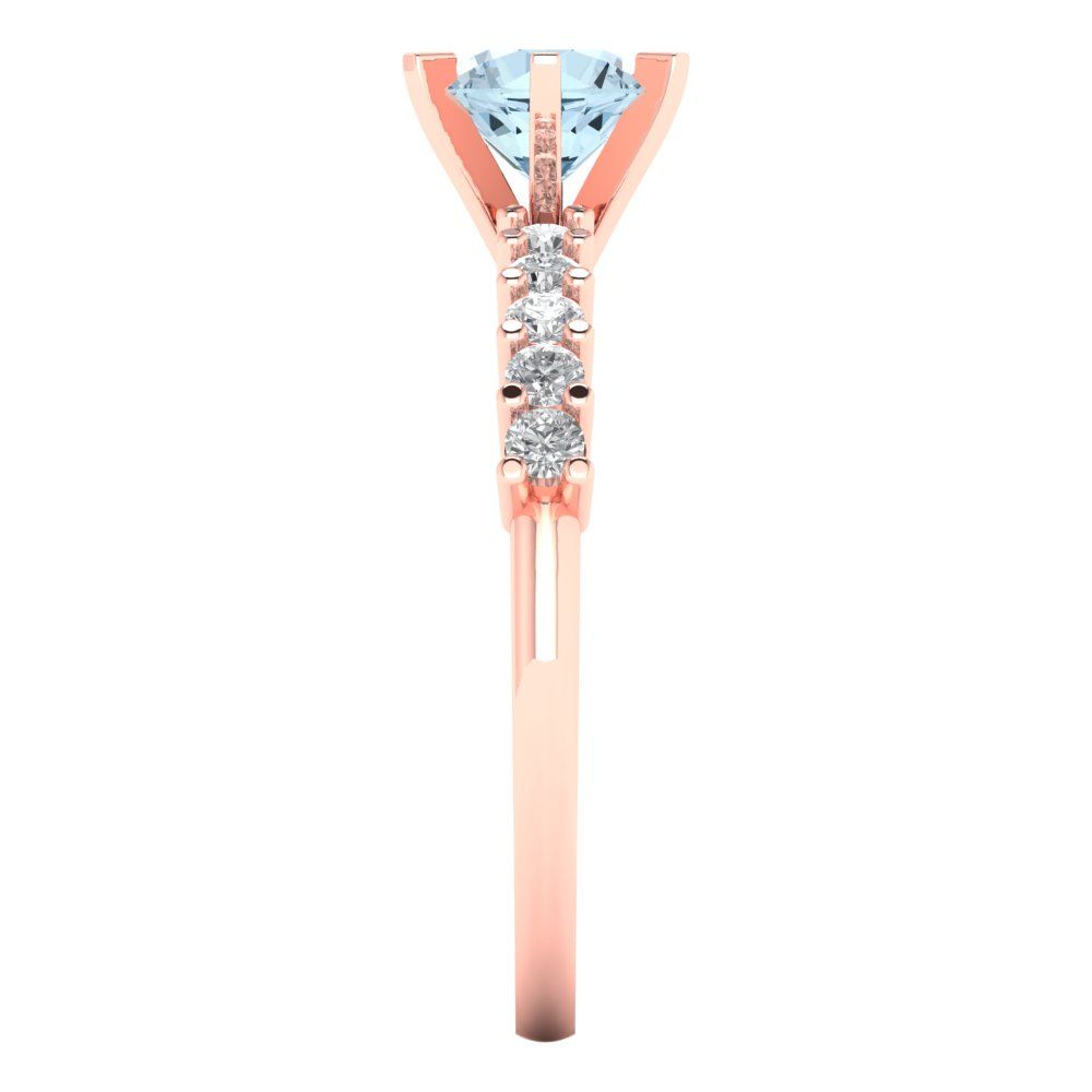 1.05 cttw Natural Swiss Blue Topaz Solitaire with Zirconia Simulated Diamond Accents Engagement Ring - Solid Gold (Round Cut,6.0mm)