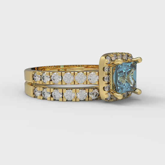 1.56 cttw Princess Cut Natural Swiss Blue Topaz Bridal Set - Solid Yellow Gold Engagement Ring & Wedding Band